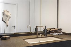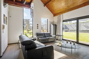 La partie privée développe 300 m2 d'un confortable hall d'entrée, un espace de vie de 55 m2, une cuisine et arrière-cuisine. A l'étage, 4 chambres, 2 salles de bain.