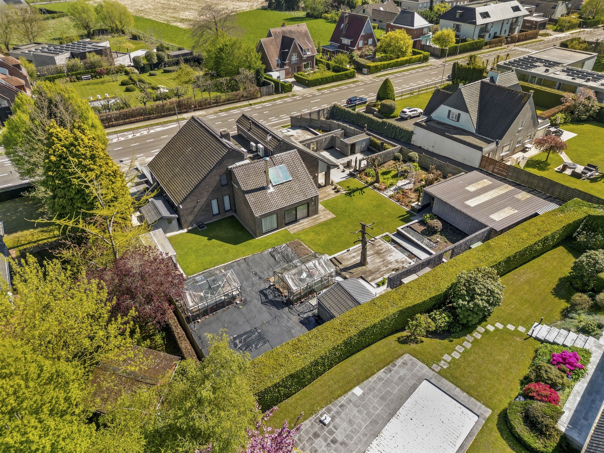 Technique: chauffage central gaz, châssis double vitrage, 54 panneaux photovoltaïques, panneaux solaires, borne de recharge, triphasé, citerne d'eau de pluie.