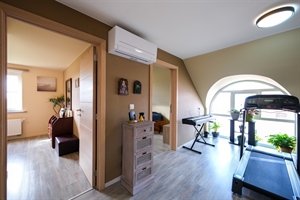Caractéristiques techniques : Panneaux photovoltaïques, 2 bornes de recharge, Climatisation, Citerne d’eau de pluie, Chauffage central au gaz : chaudière à condensation, PEB A.