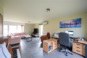 Dès l’entrée, vous serez séduits par un espace de vie de ±60 m², lumineux et parfaitement agencé, réunissant salon, salle à manger et cuisine équipée.