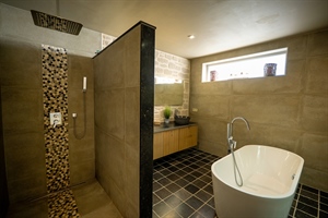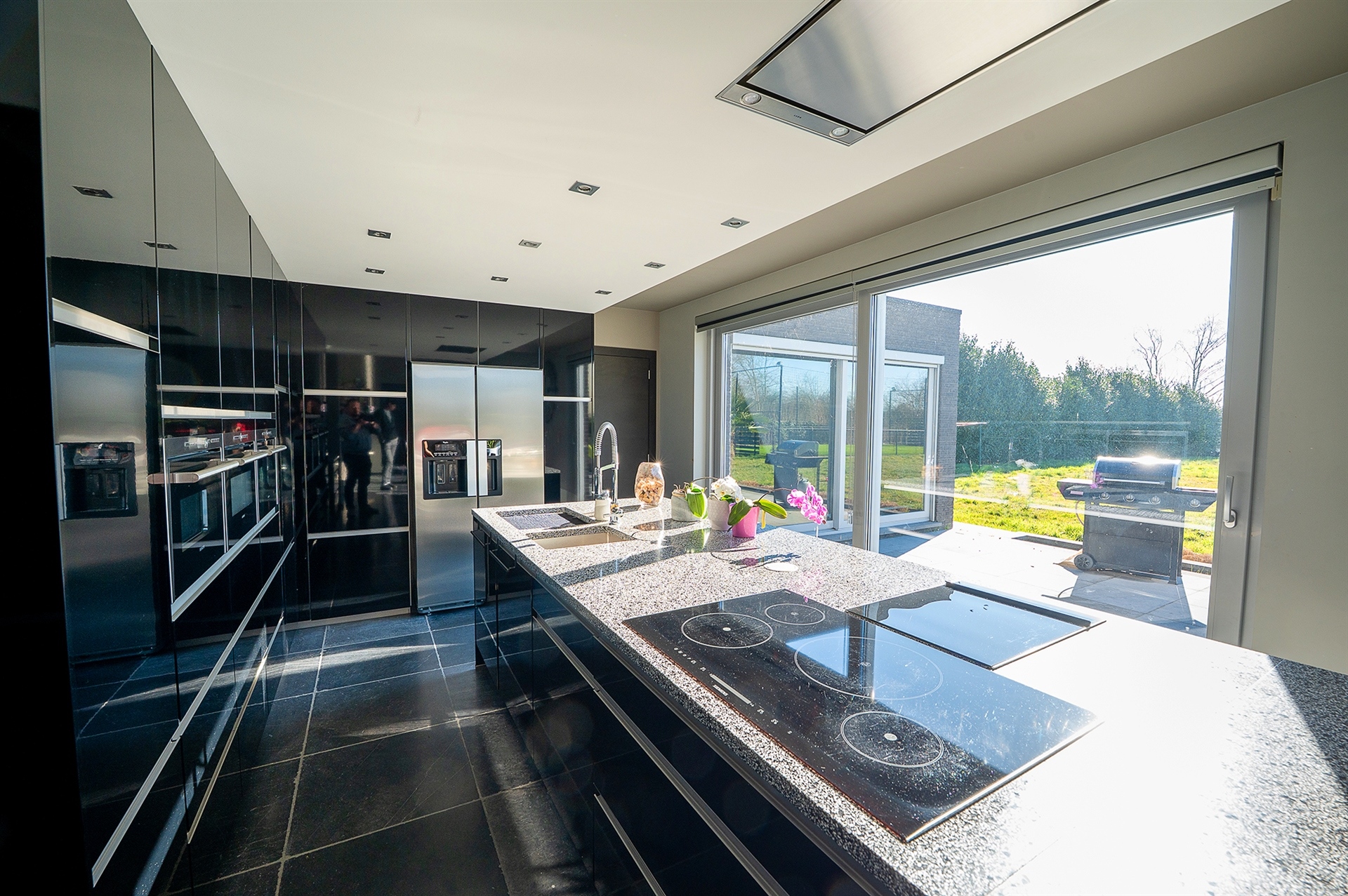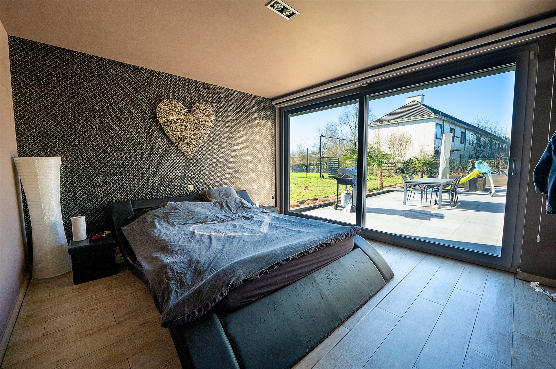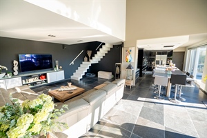 L’habitation, lumineuse et chaleureuse, se compose au rez-de-chaussée d’un hall d’entrée, d’un bureau avec entrée indépendante, d’un WC séparé, d’un vaste séjour ouvert sur une cuisine USA hyper-équipée, d’une buanderie et d’une suite parentale avec dressing et salle de bains privative. 2 doubles garages attenants.