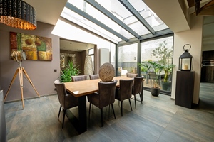 Dès l’entrée, une ambiance feutrée vous enveloppe. Loin de l’agitation urbaine, vous découvrez un hall avec vestiaire, WC séparé, buanderie technique... avant d'accéder à une spectaculaire pièce de vie baignée de lumière grâce à sa verrière et ses nombreuses ouvertures.