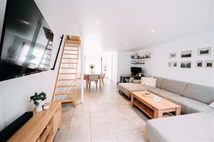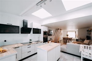 Dès l'entrée, vous serez séduit par un vaste espace de vie baigné de lumière naturelle, où le séjour s'ouvre harmonieusement sur une cuisine équipée contemporaine, alliant confort et convivialité.