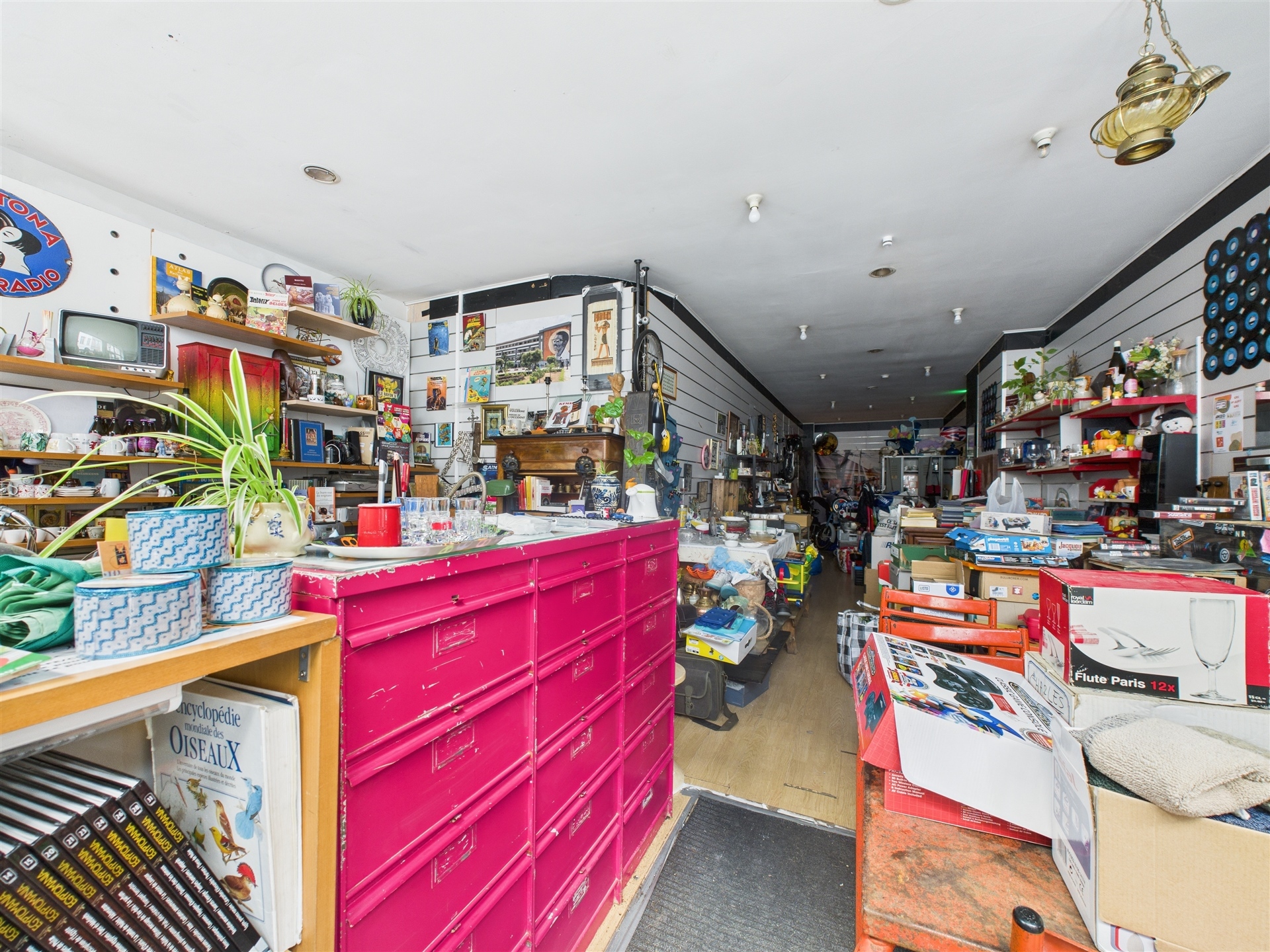 Muni d'une entrée séparée, le rez, loué à 500€/mois dispose de plus de 50m² de superficie ainsi qu'une arrière boutique, de WC et de l'accès à la cave.