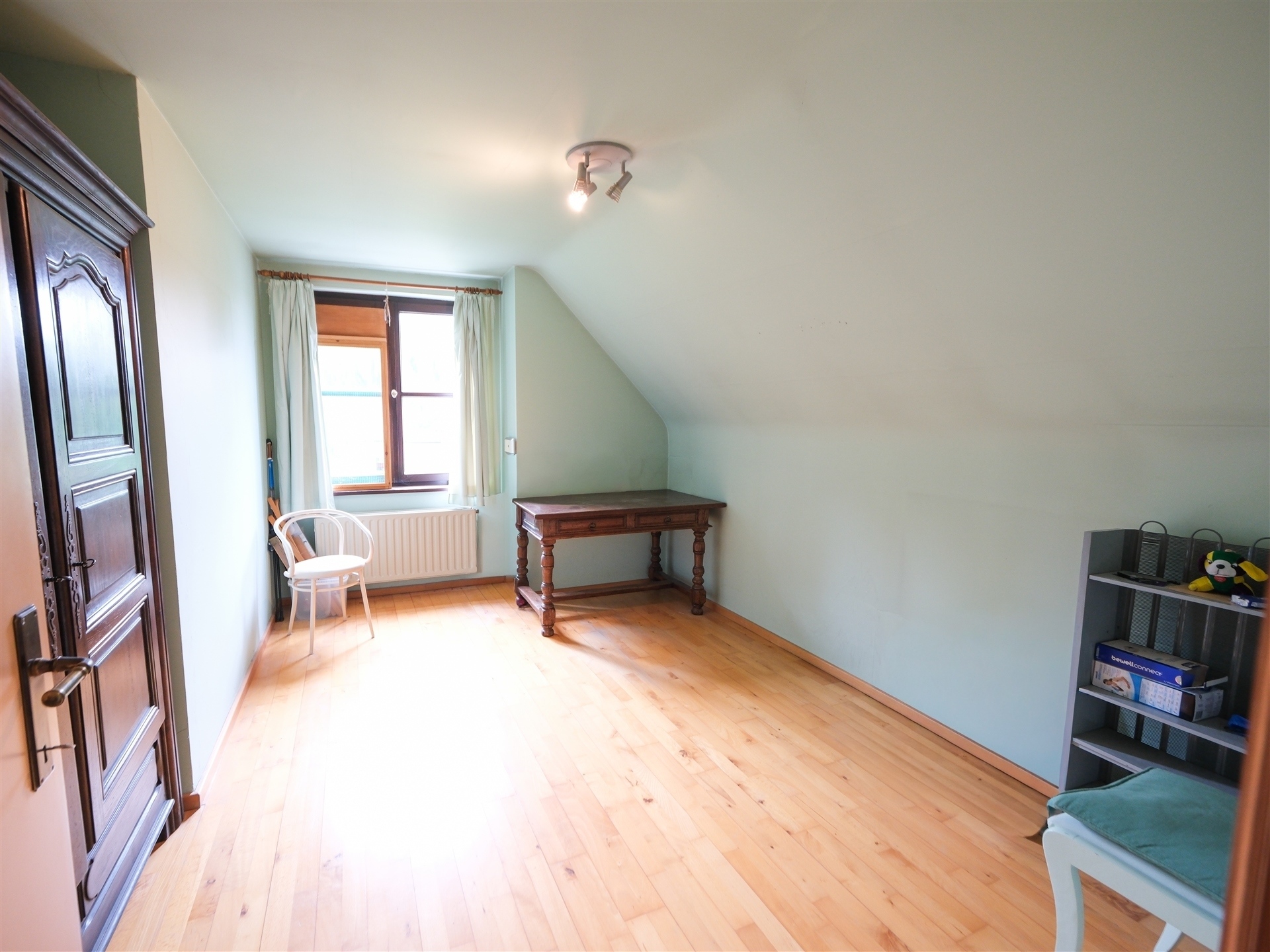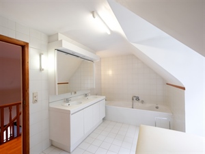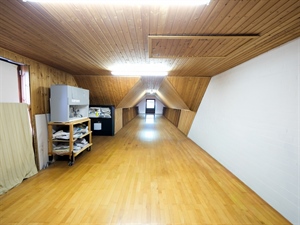 Le deuxième étage abrite un grenier spacieux de ±100 m², parfait pour le rangement ou un futur aménagement. Côté confort : électricité conforme, chauffage central, châssis bois double vitrage, citerne d’eau de pluie de 10.000 L. Une propriété rare, idéale pour concilier vie privée et activité professionnelle dans un cadre paisible.