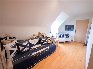 À l’étage, le hall de nuit dessert trois chambres confortables, une salle de bain complète (baignoire, douche, double lavabo), un WC séparé, un espace polyvalent de 54 m² pouvant devenir bureau, studio ou salle de jeux, ainsi qu’un bureau transformable en quatrième chambre.