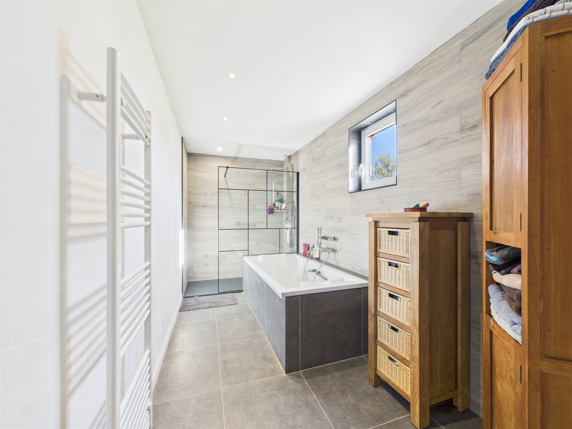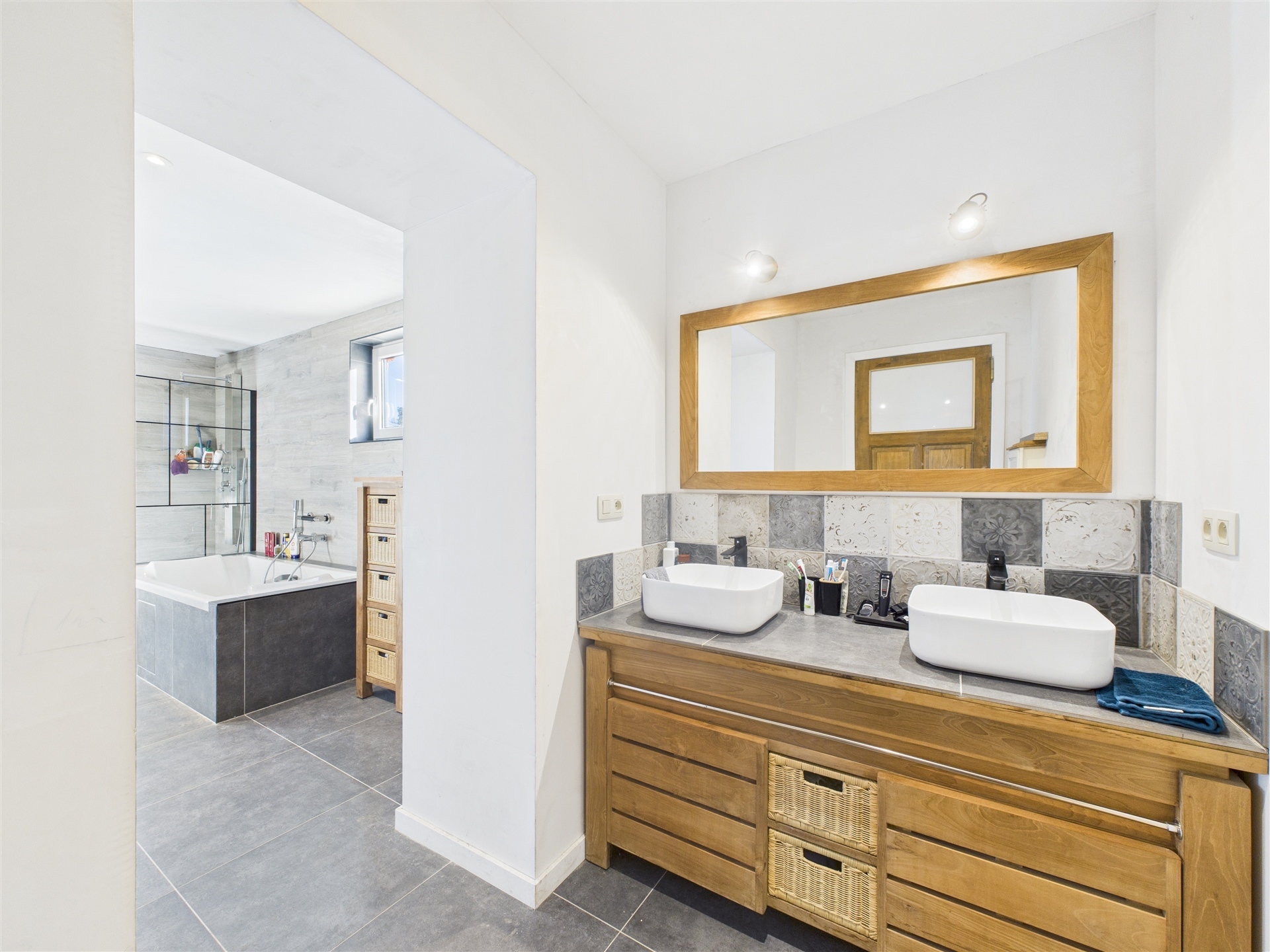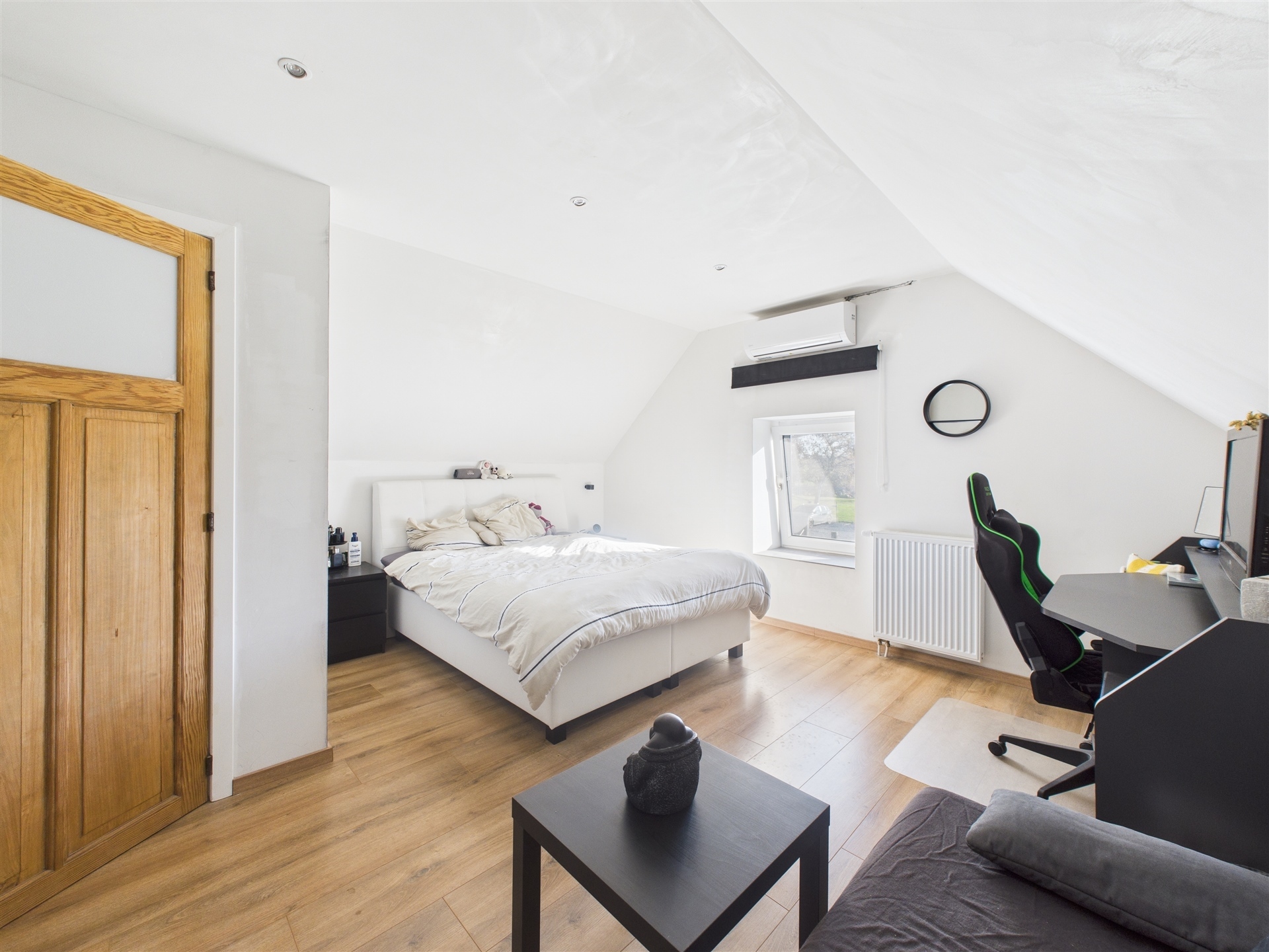 Découvrez une propriété rare qui combine harmonieusement confort privé, potentiel professionnel et opportunité d’investissement. Cette maison à vocation mixte se distingue par ses volumes généreux, ses prestations techniques de qualité et ses multiples possibilités d’aménagement, le tout implanté sur une parcelle comprenant également un terrain constructible. L’habitation principale s’ouvre sur un hall privatif avec vestiaire et WC séparé. La salle à manger occupe une position centrale, donnant accès à une cuisine entièrement équipée et à un salon en estrade, chaleureux et intimiste. Le RDC comprend aussi un bureau de 14 m² pouvant servir de chambre, une salle de bain avec douche, une grande buanderie et un local technique. À l’étage, trois chambres de 17, 18 et 23 m², une seconde salle de douche, un WC séparé et un vaste pallier. À l’extérieur, un établi à rénover offre un beau potentiel professionnel ou artisanal. Le jardin, ouvert sur les champs, garantit tranquillité et vue dégagée. Une partie du terrain est constructible, offrant de belles perspectives d’extension ou d’investissement. Un studio indépendant complète le bien : Loué 590€ Atouts techniques : PEB B, électricité conforme, 20 panneaux solaires, châssis PVC double vitrage, chauffage gaz (chaudière Vaillant récente), pompe à chaleur, poêle à bois, boiler thermodynamique, ventilation double flux, tout-à-l’égout. RC : 714 €. Visite virtuelle : https://tour.giraffe360.com/3348195468cc4bc88e6ba353769409f9