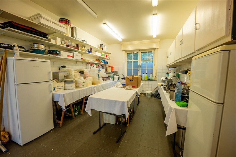 L’espace professionnel comprend un hall d’accueil, un bureau privé et des sanitaires clients. Son point fort : une cuisine professionnelle de plus de 70 m² attenante à une salle de réception de 72 m², idéale pour accueillir une clientèle dans une ambiance chaleureuse.
