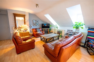 L’étage abrite un logement privé lumineux de 45 m² avec un salon ouvert sur une cuisine moderne. Trois chambres de 15 à 20 m² offrent un confort optimal, complétées par une salle de bain équipée.