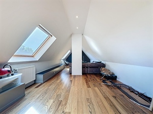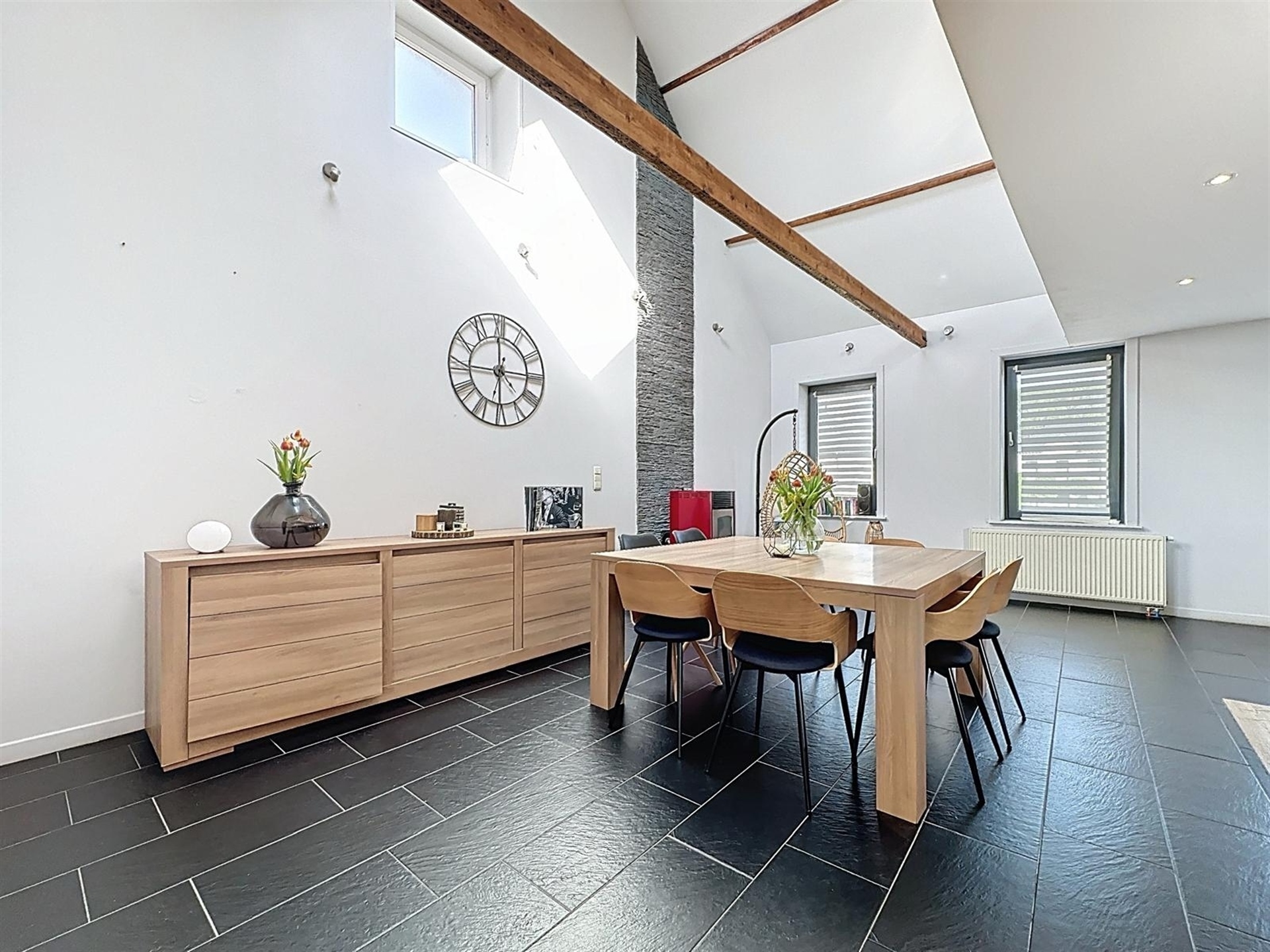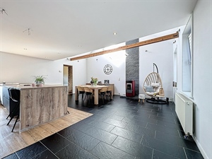 Situé en plein cœur du charmant village de Saint-Léger, ce magnifique duplex type loft séduit par ses volumes généreux, son cachet et sa lumière omniprésente. Dès l’entrée, une première terrasse vous accueille et donne accès à un hall menant à une cave. À l’étage principal, vous découvrirez une vaste salle à manger de plus de 25 m² ouverte sur une cuisine entièrement équipée de 30 m², le tout baignant dans une ambiance chaleureuse. L’espace se prolonge par un salon cosy de 38 m², parfait pour vos instants de détente. Sur ce même niveau se trouvent une première chambre avec accès direct à la salle de bain, un dressing, une buanderie, un WC séparé ainsi qu’une seconde terrasse en bois. À l’étage supérieur, un hall de nuit distribue une suite parentale lumineuse de plus de 25 m² et une troisième chambre spacieuse de 29 m². Côté technique, ce bien dispose de châssis PVC double vitrage, du chauffage central au gaz complété par un poêle à pellets, d’une électricité conforme jusqu’en 2040 et affiche un PEB de classe C. À seulement quelques pas du canal, ce cocon familial unique allie espace, confort et charme dans un environnement paisible et recherché.