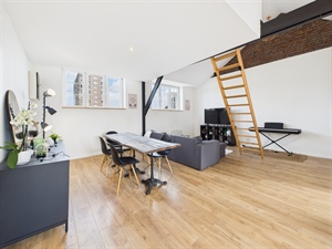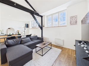 Au 2eme étage, un second appartement au cachet singulier se déploie avec un hall d’entrée, une cuisine ouverte sur un espace de vie, une chambre en mezzanine, une 2eme chambre, une salle de bain ainsi qu’un grenier en mezzanine, offrant un volume supplémentaire.