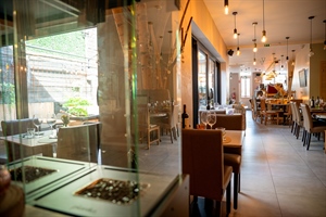 Au rez-de-chaussée, un restaurant spacieux pouvant recevoir jusqu’à 80 couverts.