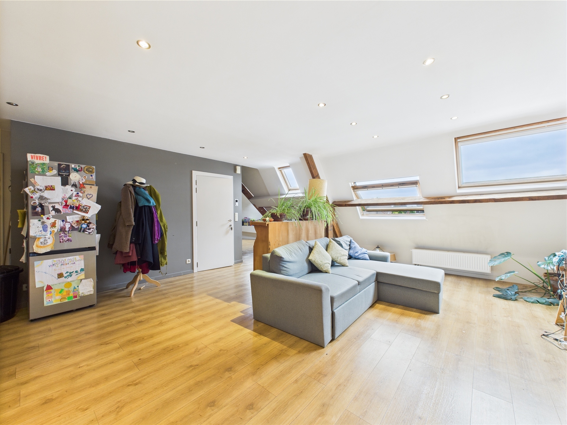 À découvrir : Appartement rénové de 2 chambres idéalement situé au centre-ville de Tournai, sur la Place Reine Astrid. Situé au 3e étage d’un immeuble avec ascenseur, ce bien se compose d’un vaste séjour ouvert sur une cuisine équipée, d’une salle de douche avec WC, ainsi que d’un espace bureau pouvant également servir de chambre. À l’étage, vous trouverez une chambre en mezzanine. Aspects techniques : chauffage central au gaz, châssis en bois avec double vitrage, électricité conforme, PEB B. Compteurs séparés pour le gaz et l’électricité. Possibilité d’acquérir un garage sécurisé en supplément pour 25.000 €. Visite virtuelle disponible ici : tour.giraffe360.com/43c9c611194b4795ba9d5b278ecf1a0a/?lsf=1 Intéressé(e) ? Planifiez votre visite dès maintenant !
