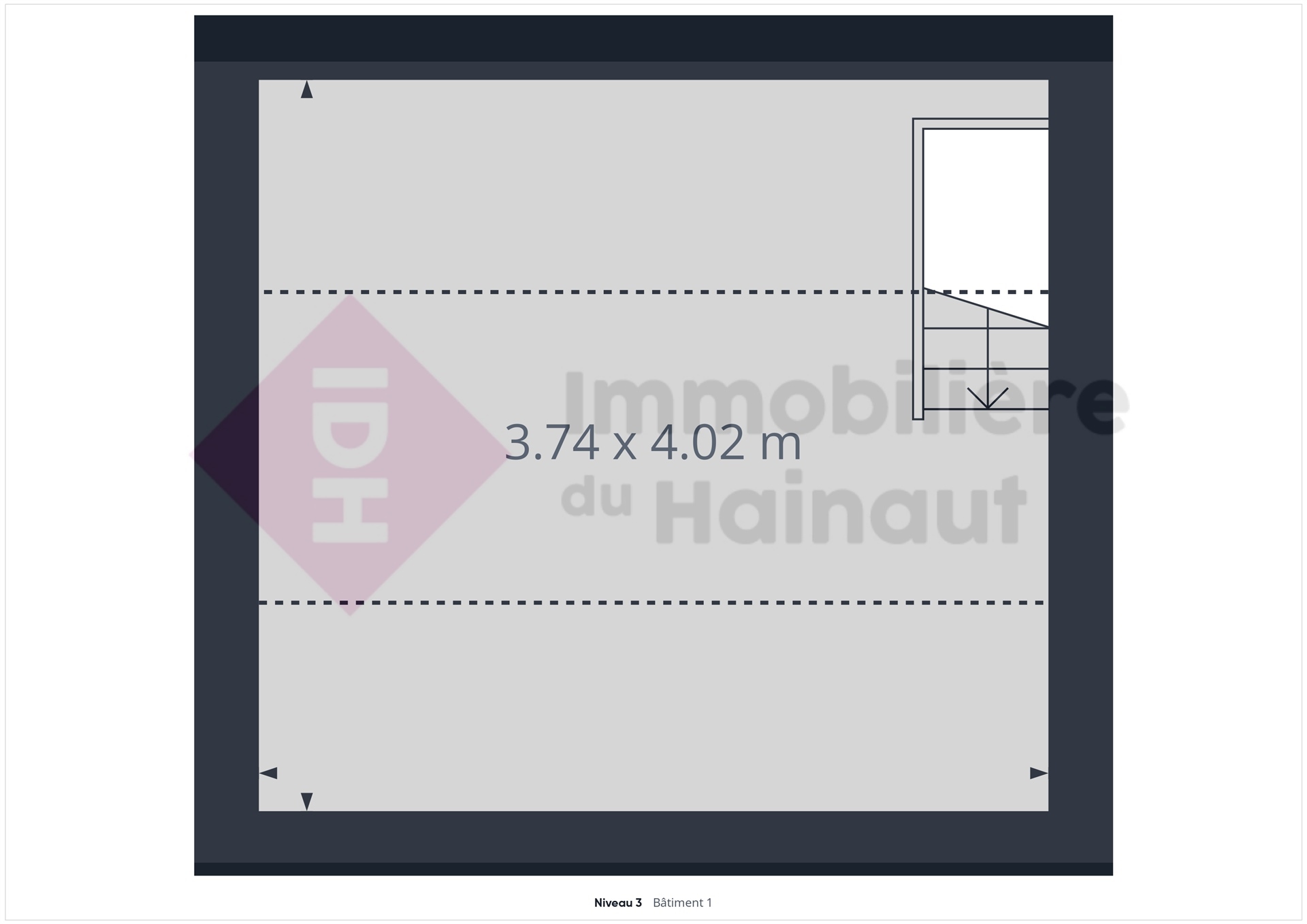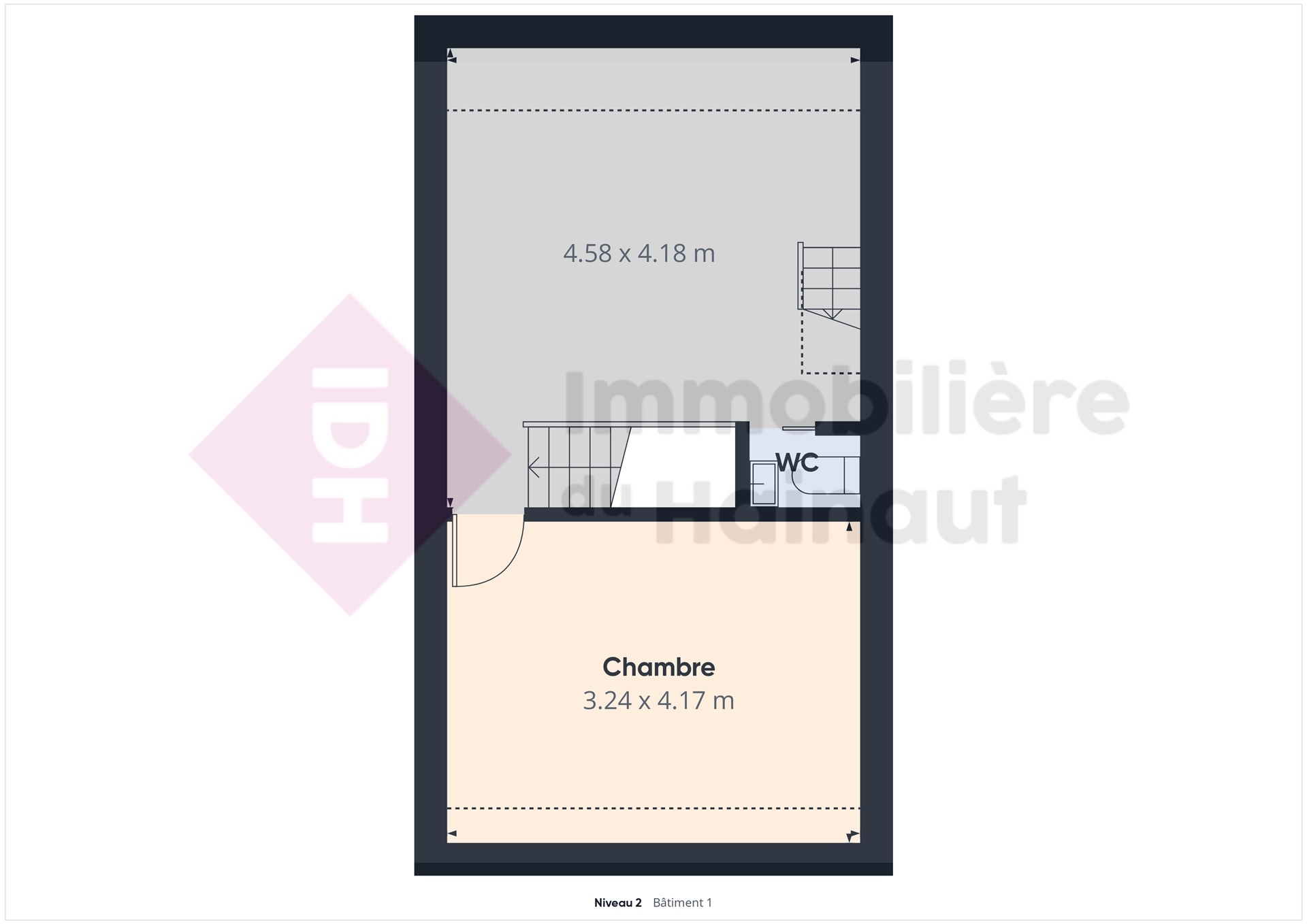 - 2e étage: Chambre 3, grand espace ouvert pouvant faire office de chambre 4 donnant accès au WC et aux combles, pouvant également accueillir une 5e chambre.