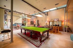 Elle est actuellement agencée en 3 chambres, 3 salles de bain, dressings ainsi qu'un bureau très confortable. La salle à manger et la cuisine offrent soit une vue sur la cour intérieure intimiste ou une vue dégagée sur l'étang et le terrain. Le salon avec cheminée et la salle de billard avec bar ne vous laisseront pas indifférent.