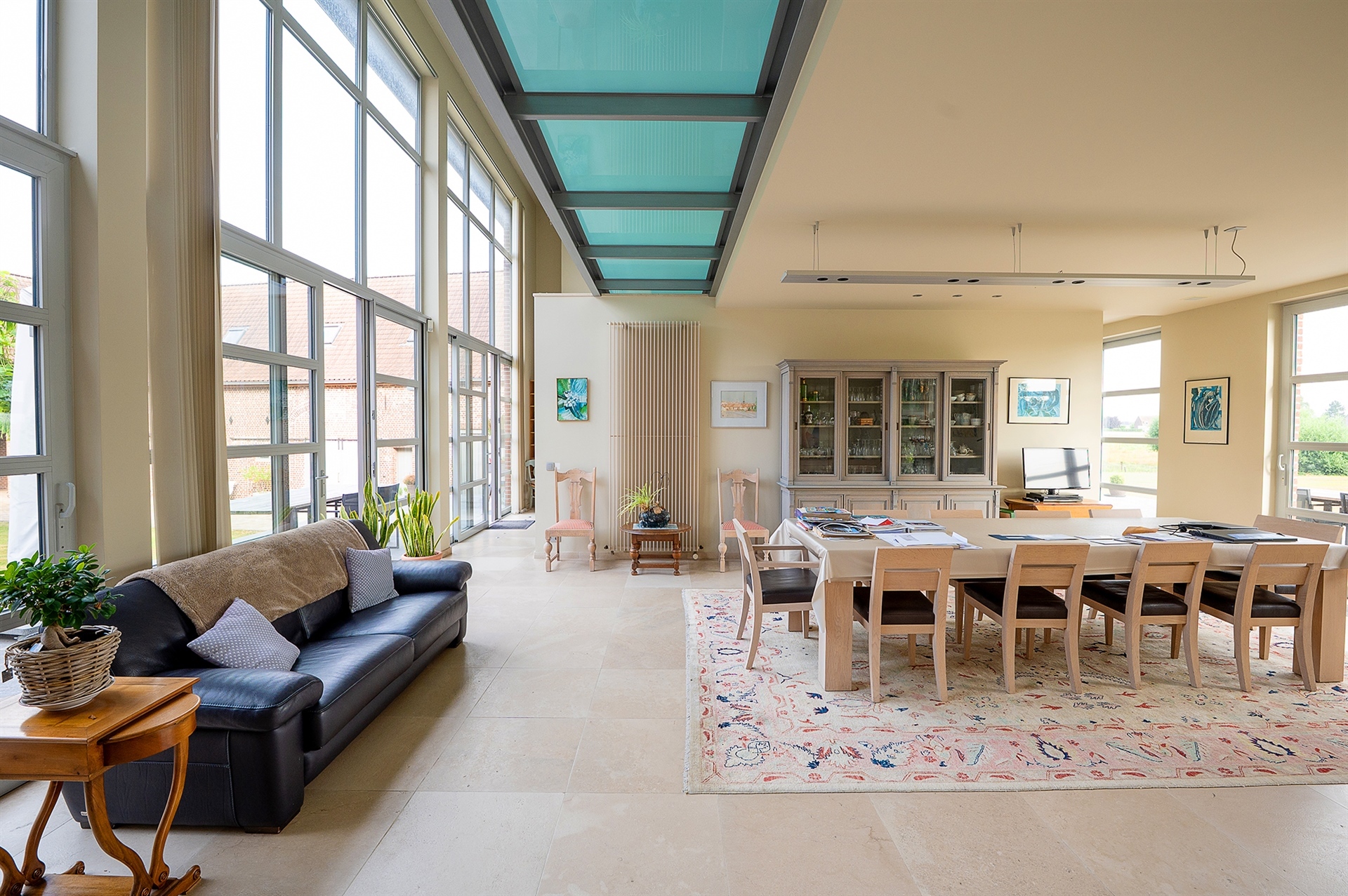 L'habitation se veut spacieuse, mais à taille humaine, pour toute personne qui aime les volumes : mezzanine, différentes hauteurs sous plafonds, profondeur de terrain ...