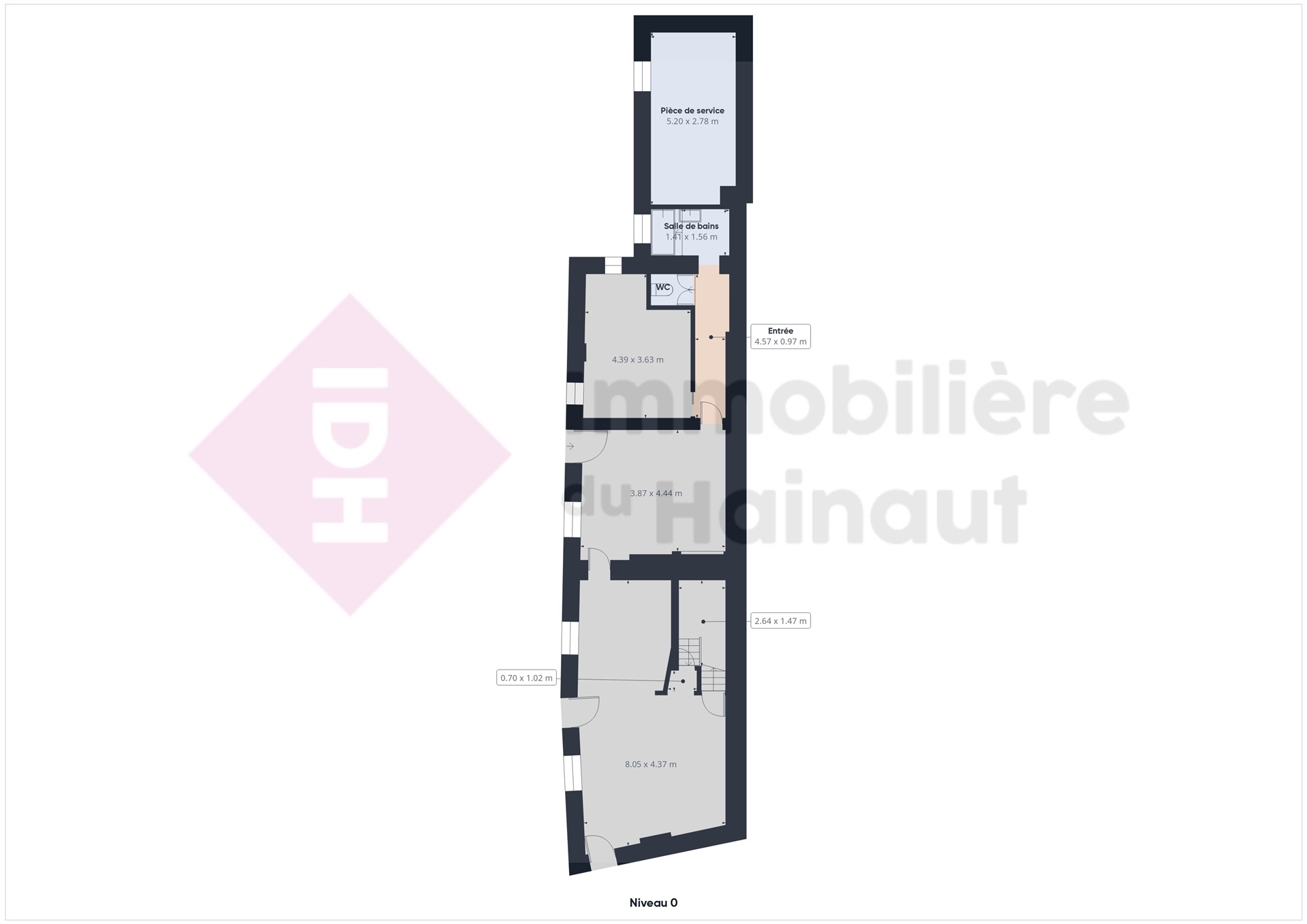 Le volume principal s'articule en rez + combles avec un volume secondaire à l'arrière utilisable comme pièce de service.