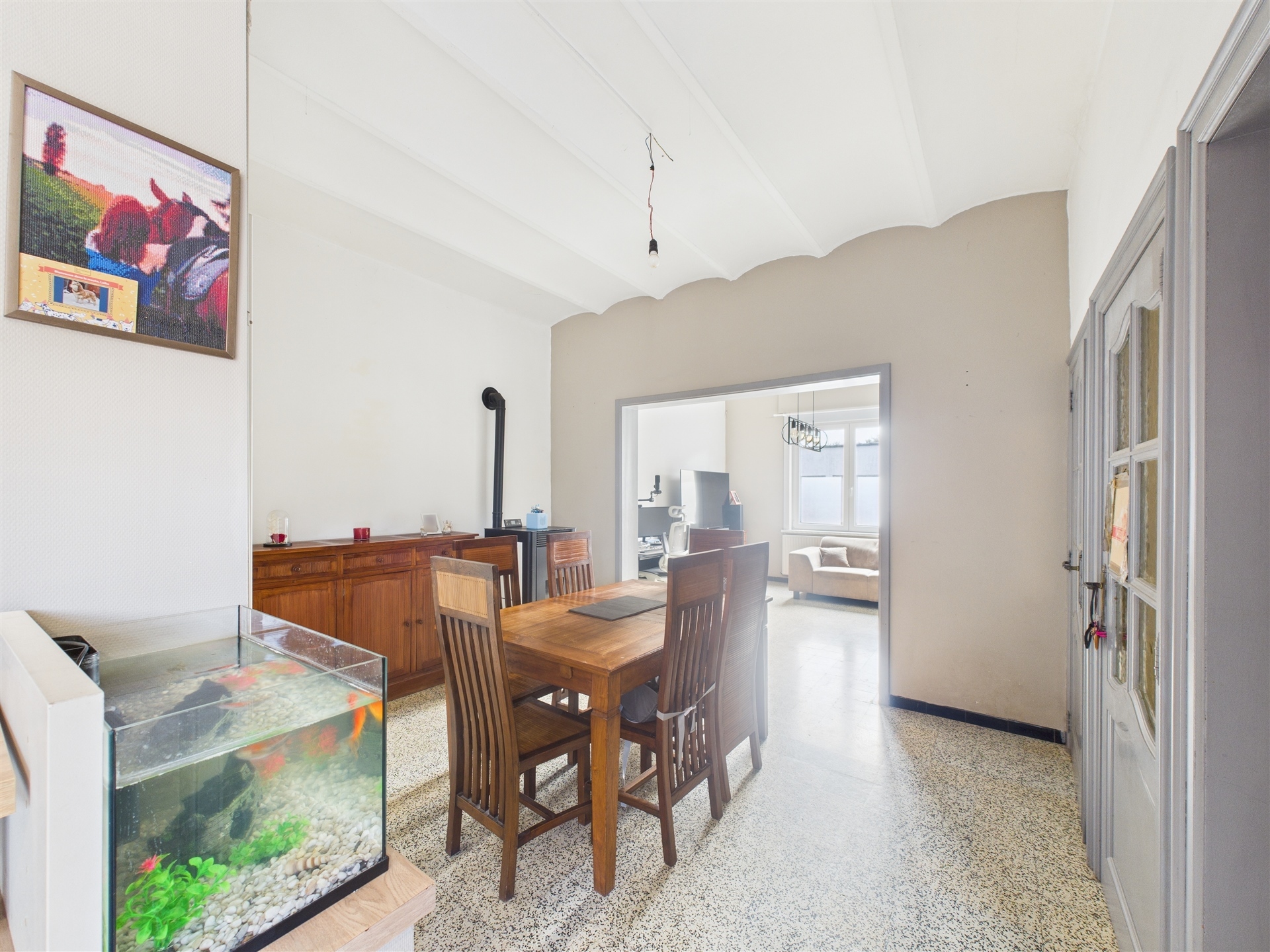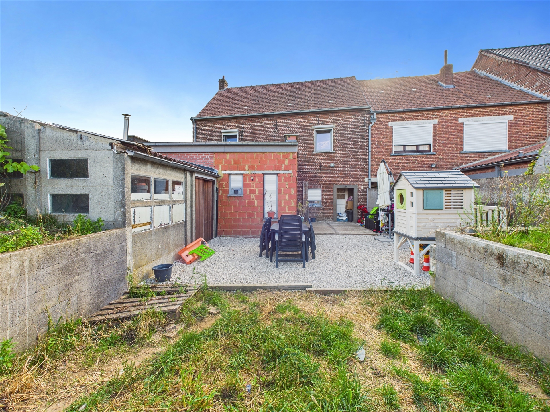 Venez découvrir cette agréable maison 3 façades avec garage, offrant de beaux volumes et de nombreuses possibilités d’aménagement. Elle se compose d’un hall d’entrée privatif menant vers un séjour lumineux de 30m² ouvert sur une cuisine entièrement équipée, d’une salle de douche avec WC ainsi que d’une grande cave saine de plus de 20m². À l’étage, le pallier pouvant servir de bureau distribue trois chambres confortables de 13, 15 et 17m². Les combles aménageables de 50m² permettent encore de créer deux pièces supplémentaires selon vos besoins. À l’extérieur, une terrasse agréablement orientée mène à un bel espace jardin. D’un point de vue technique, la maison est équipée d’un chauffage central au mazout avec citerne aérienne de 1500L, d’une installation électrique conforme, d’un PEB D et d’un revenu cadastral de 371€. Les châssis sont en double vitrage PVC et bois avec volets manuels et électriques. Une citerne d’eau de pluie de 7500L (actuellement non utilisée) est également présente, tout comme un raccordement au tout-à-l’égout. Un panneau publicitaire génère par ailleurs un revenu annuel de 240€ par an. Lien de la visite virtuelle : https://tour.giraffe360.com/496b5dcc98064cee8d3b0f3c920c992b Intéressé ? Planifiez dès maintenant votre visite !