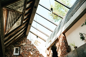A l'orée du bois et dans un cadre idyllique, se dévoile cette longère unique en son genre et sortie de l'imagination d'un amateur des matériaux bruts : béton, taule, bois, carrelage ancien, etc ...